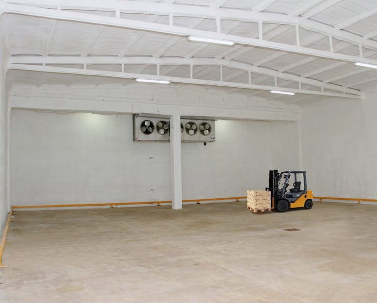 Instalaciones listas para operación con áreas de carga, cámaras refrigeradas y espacios amplios